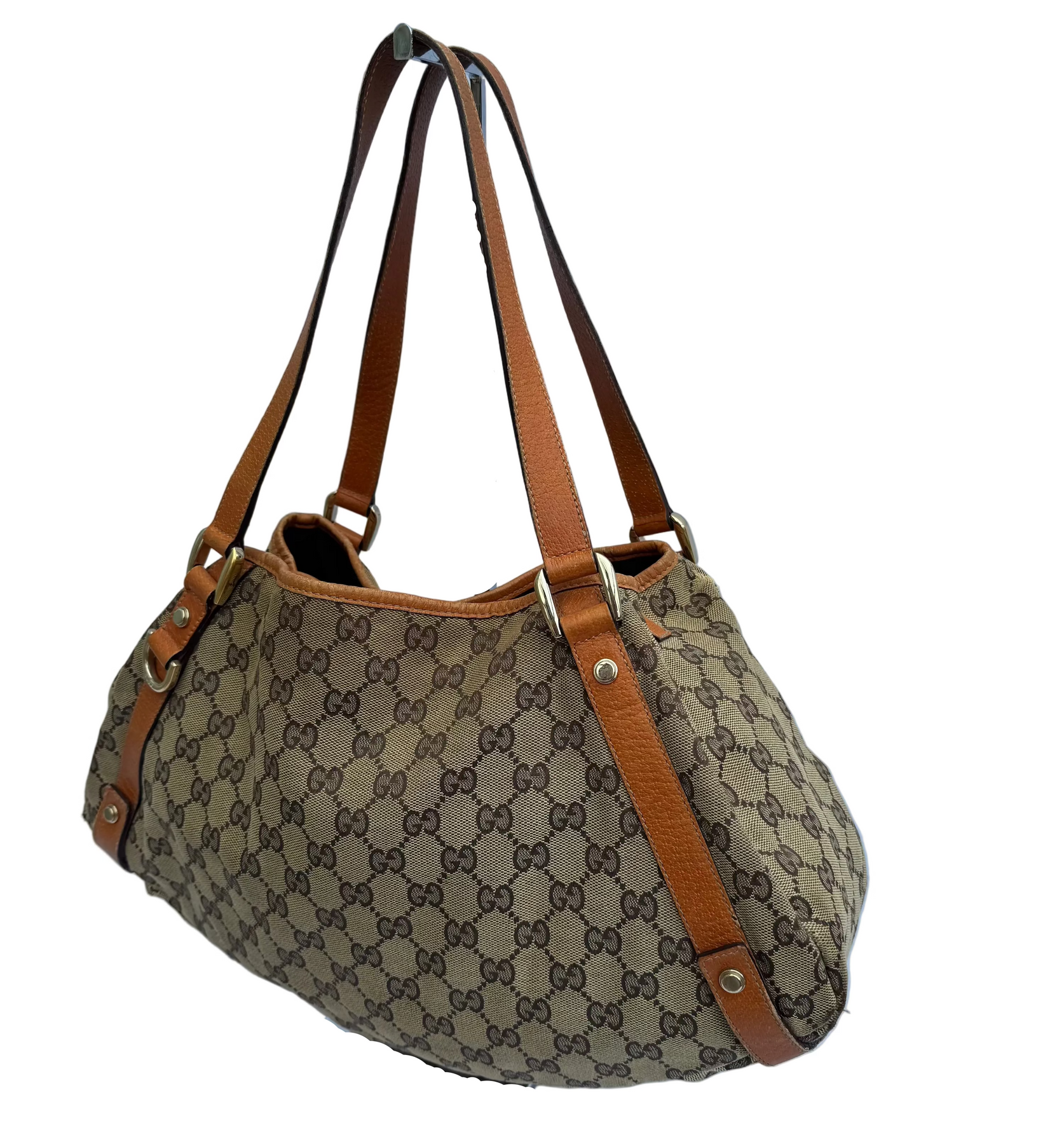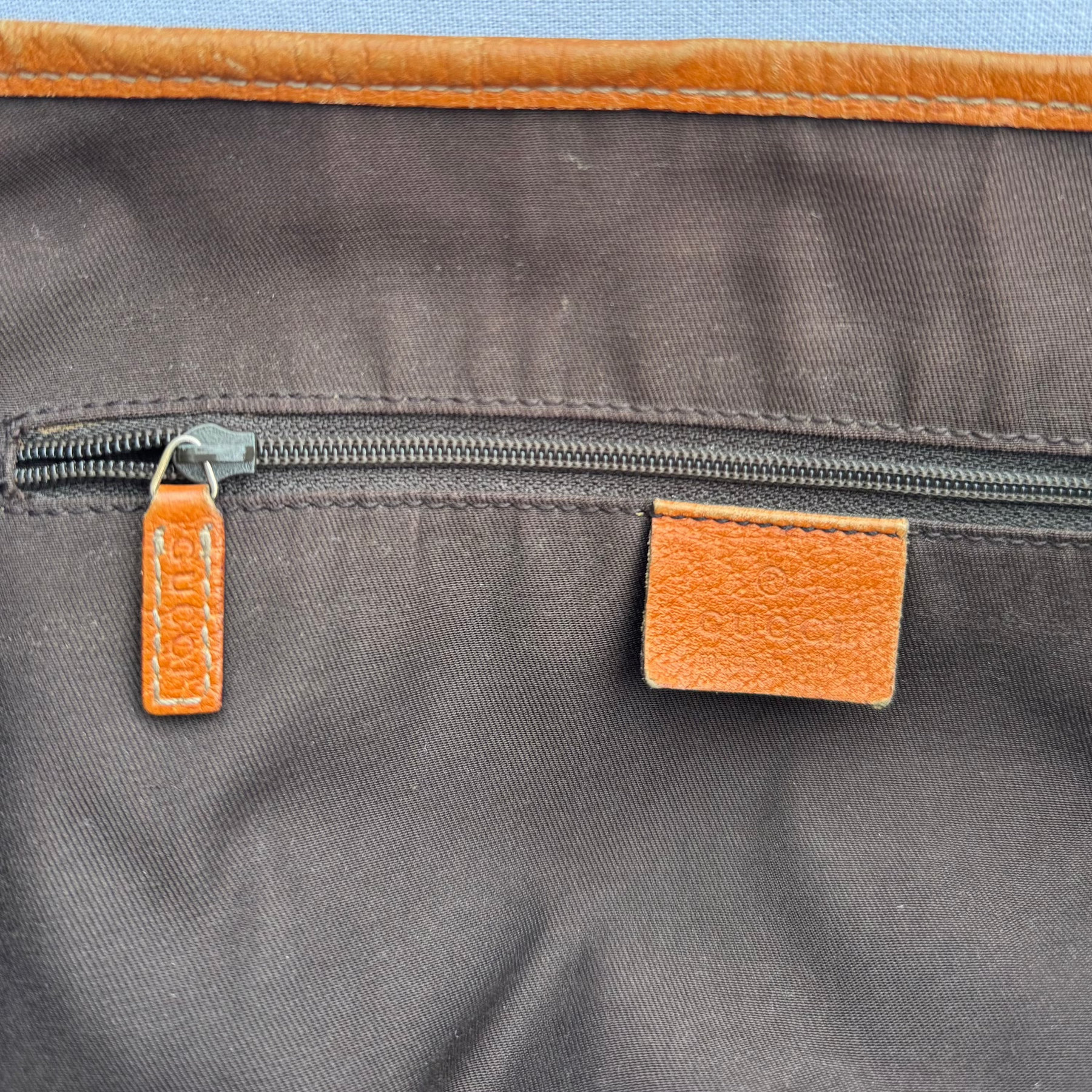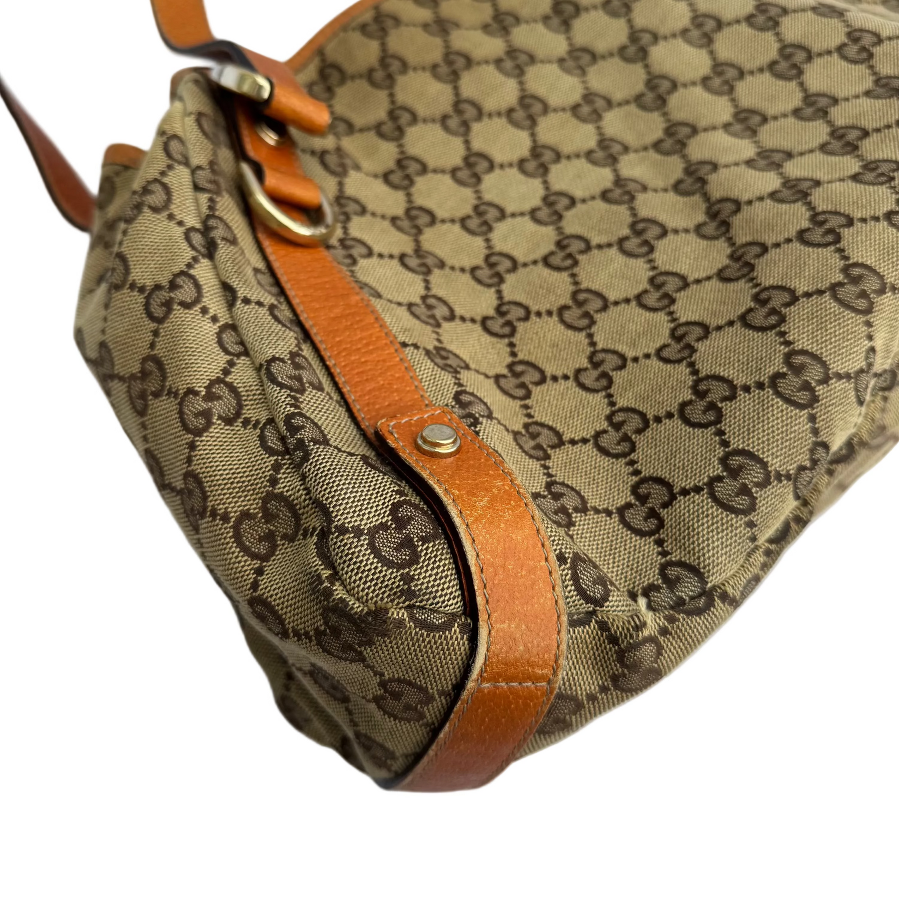 Details: Crafted from signature monogram GG canvas with smooth orange-brown leather trim and gold-tone hardware for a classic finish. Designed with a spacious interior and relaxed silhouette, it offers timeless style with everyday practicality.