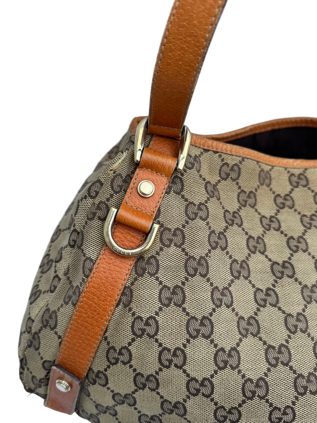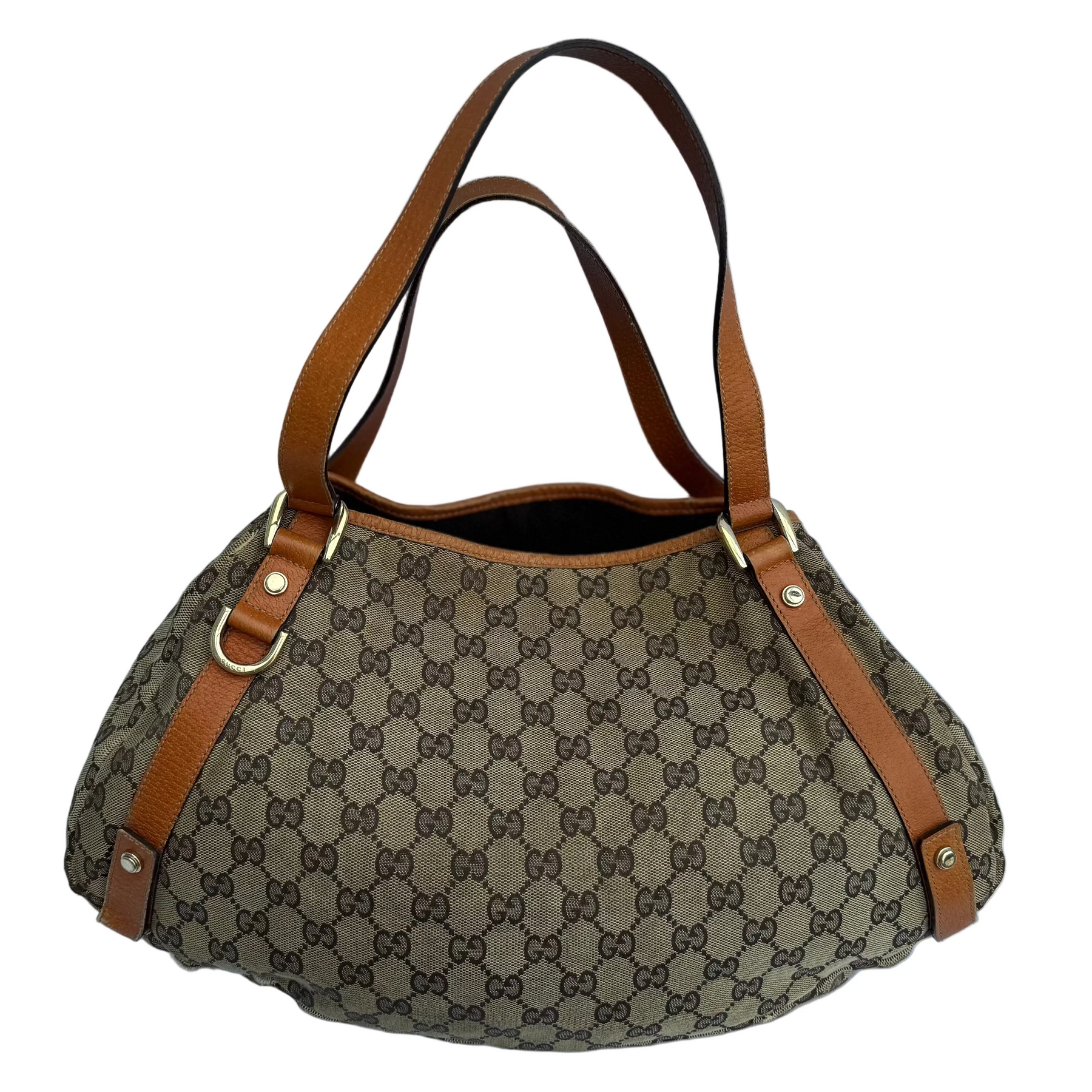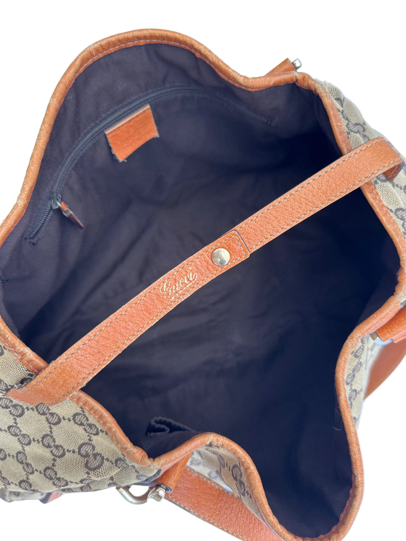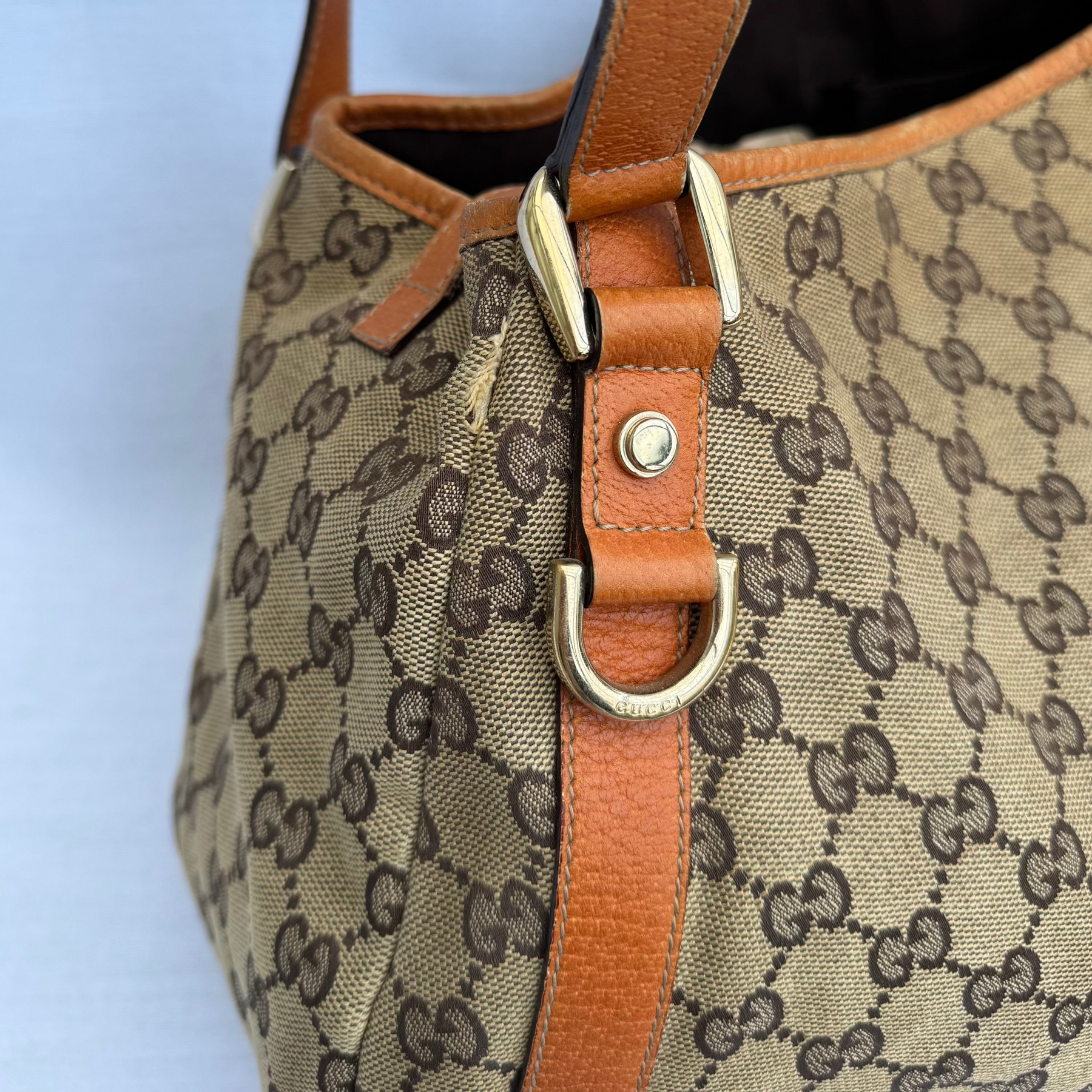 Details: Crafted from signature monogram GG canvas with smooth orange-brown leather trim and gold-tone hardware for a classic finish. Designed with a spacious interior and relaxed silhouette, it offers timeless style with everyday practicality.