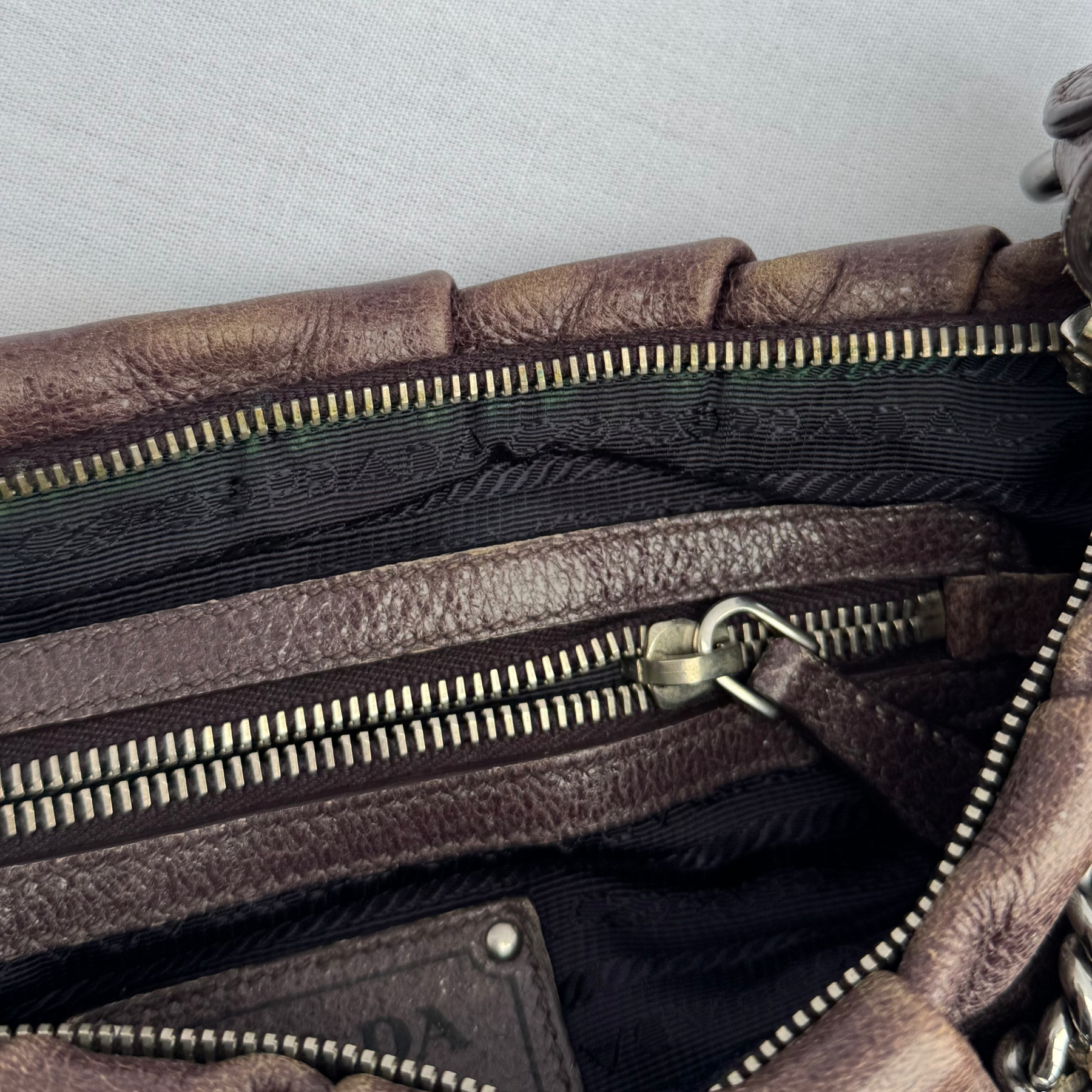 Condition Report This item has been previously owned and has signs of vintage use. Including, gentle fading to the leather but originally designed ombré and distressed. Slight cracking to the side leather buckle and discolouration to the fabric lining the interior zip.