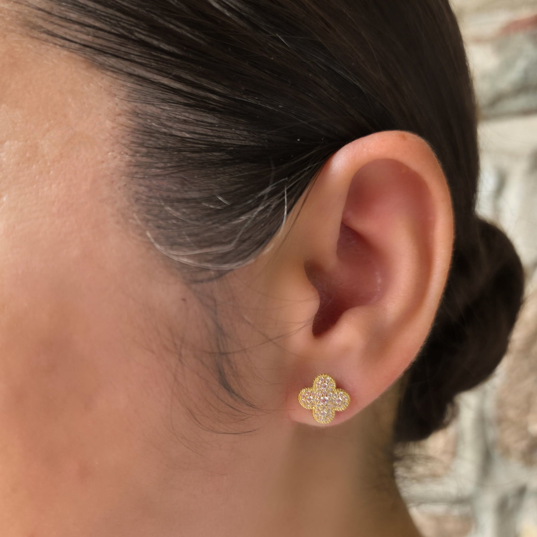 18ct Yellow Gold Plated Sterling Silver & Cubic Zirconia Clover Leaf Stud Earrings