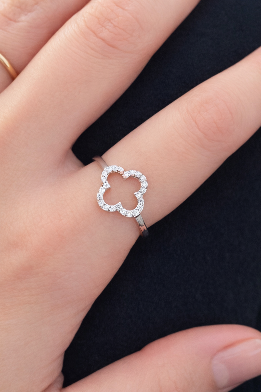 Sterling Silver & Cubic Zirconia Open Clover Leaf Ring