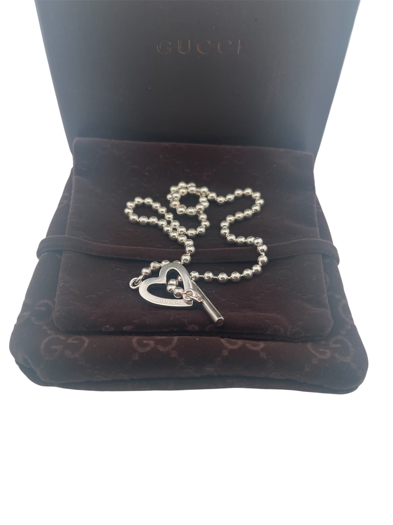 Gucci Boule Sterling Silver Heart Toggle Beaded Necklace - 15.75"