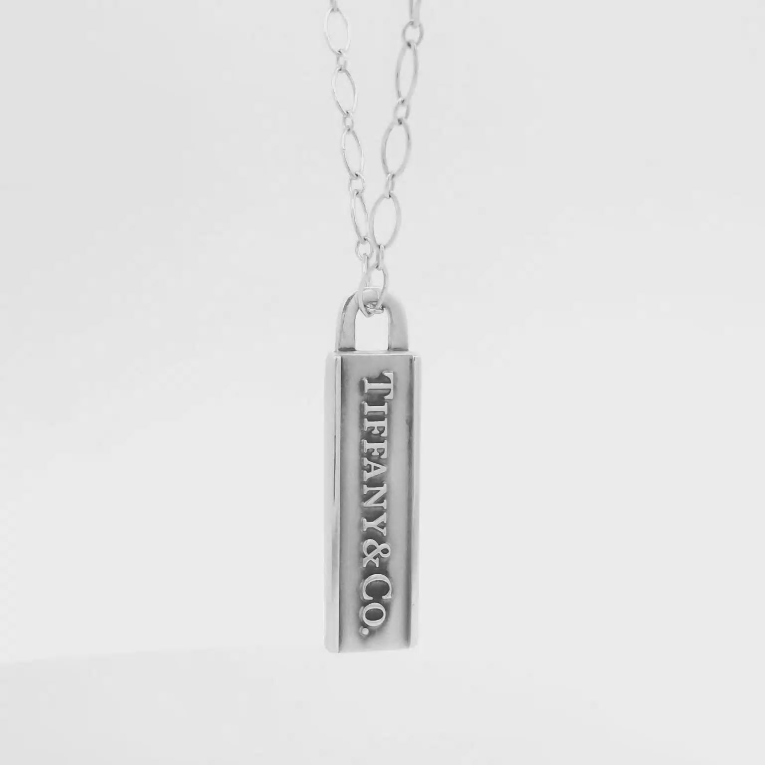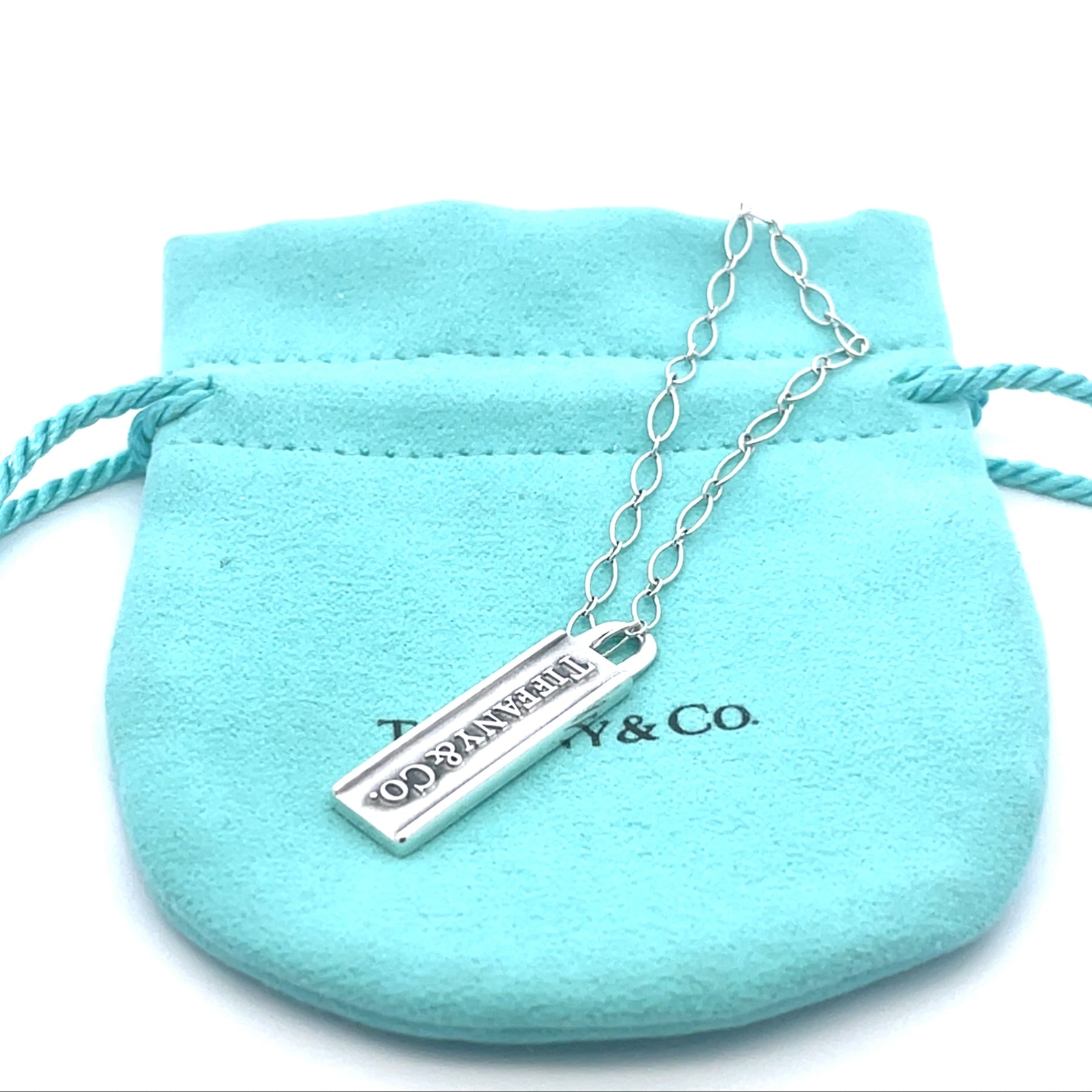 Tiffany & Co Bar Tag Sterling Silver Pendant Oval Link Necklace - 16"