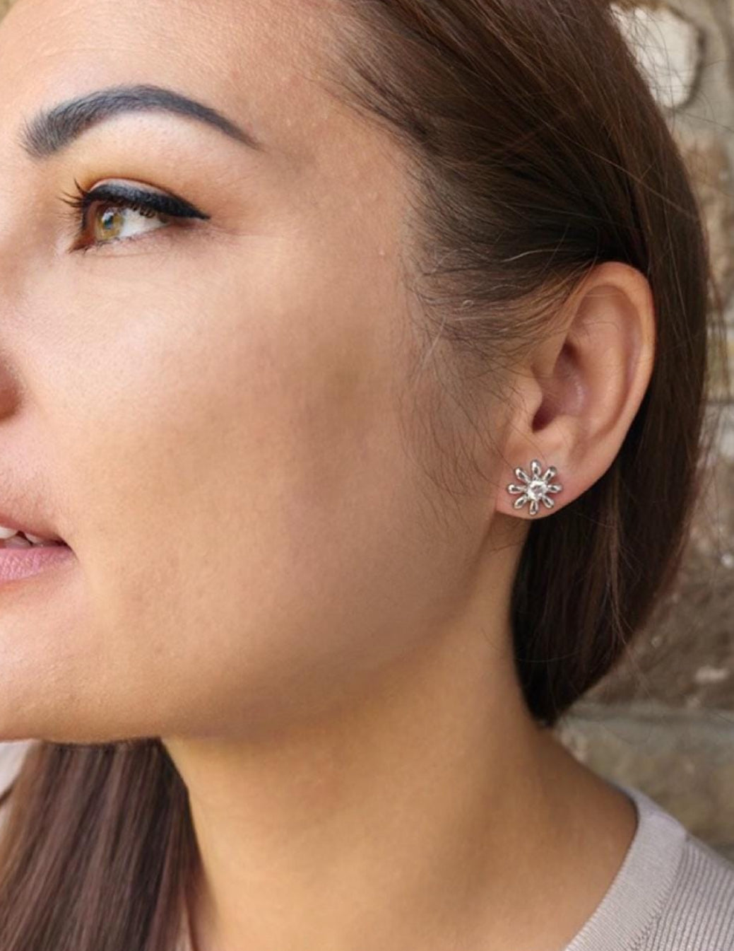 Sterling Silver (Rhodium Plated) & Cubic Zirconia Daisy Stud Earrings