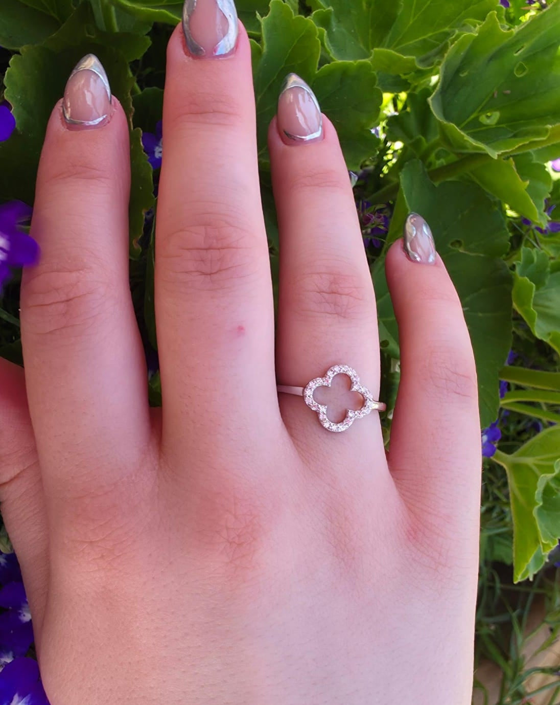 Sterling Silver & Cubic Zirconia Open Clover Leaf Ring