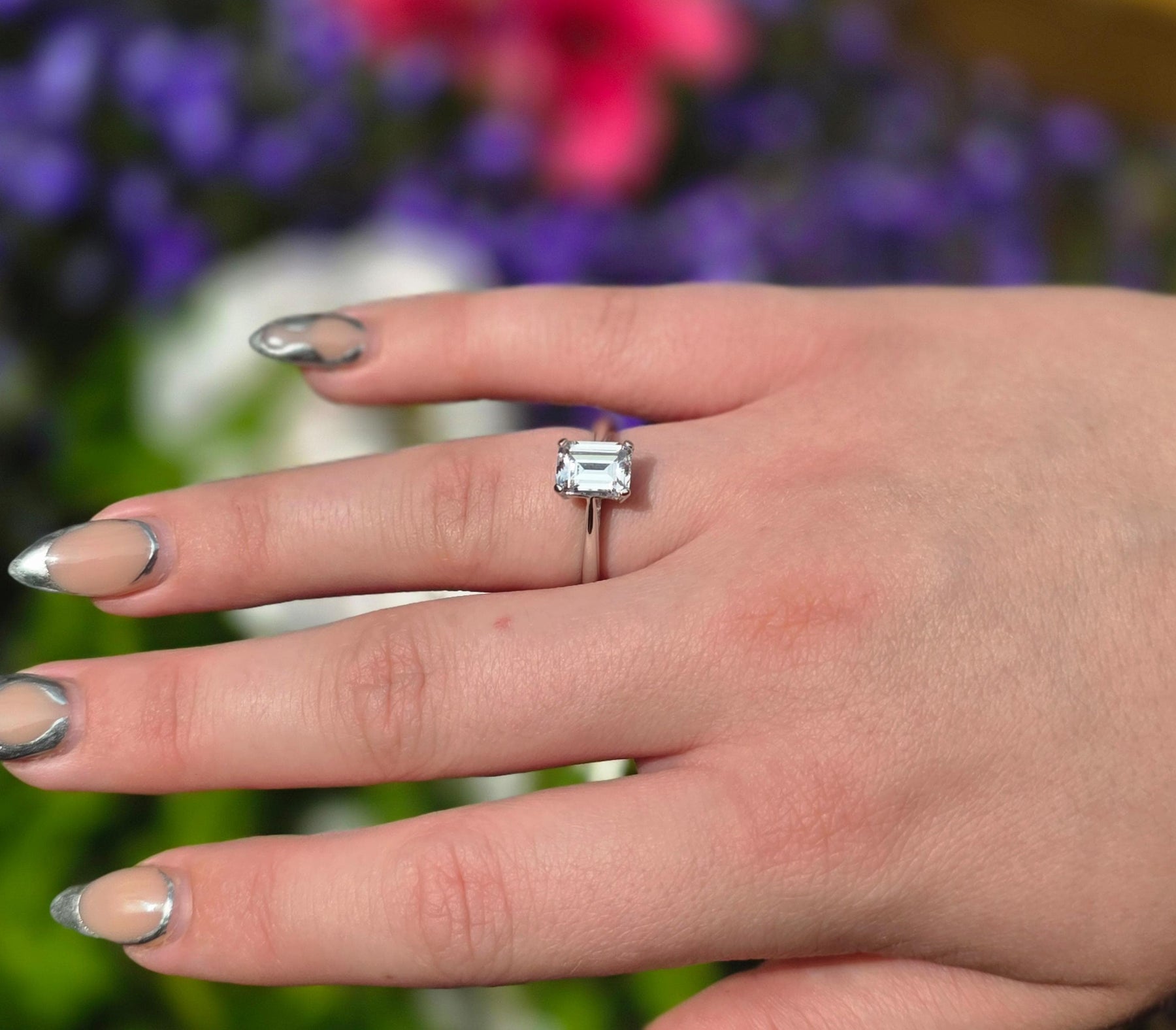 Stones: 8mm x 6mm Emerald Cut Cubic Zirconia