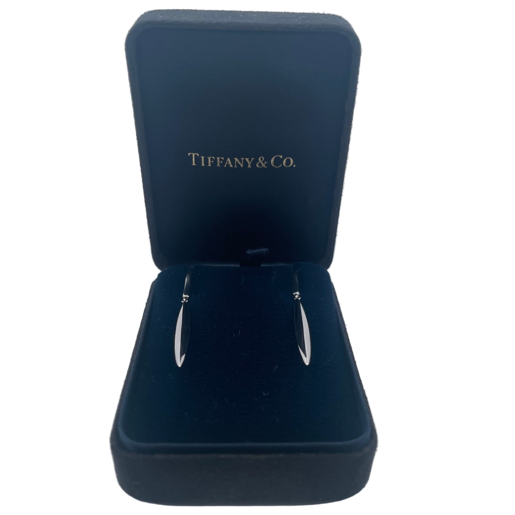 Tiffany & Co 18ct White Gold Feather Dangle Drop Earrings