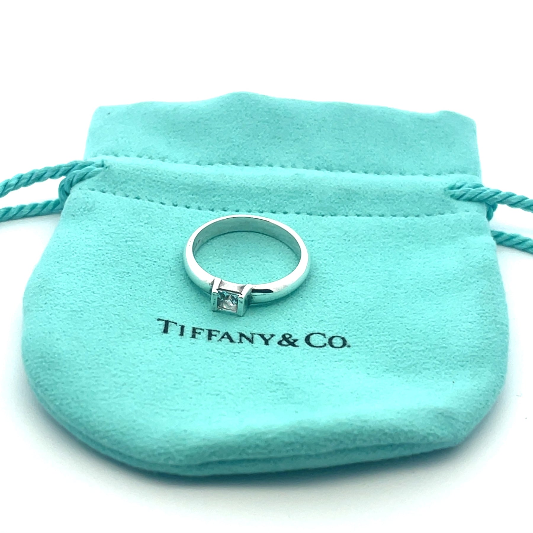Tiffany & Co Aquamarine & Sterling Silver Ring Size : N
