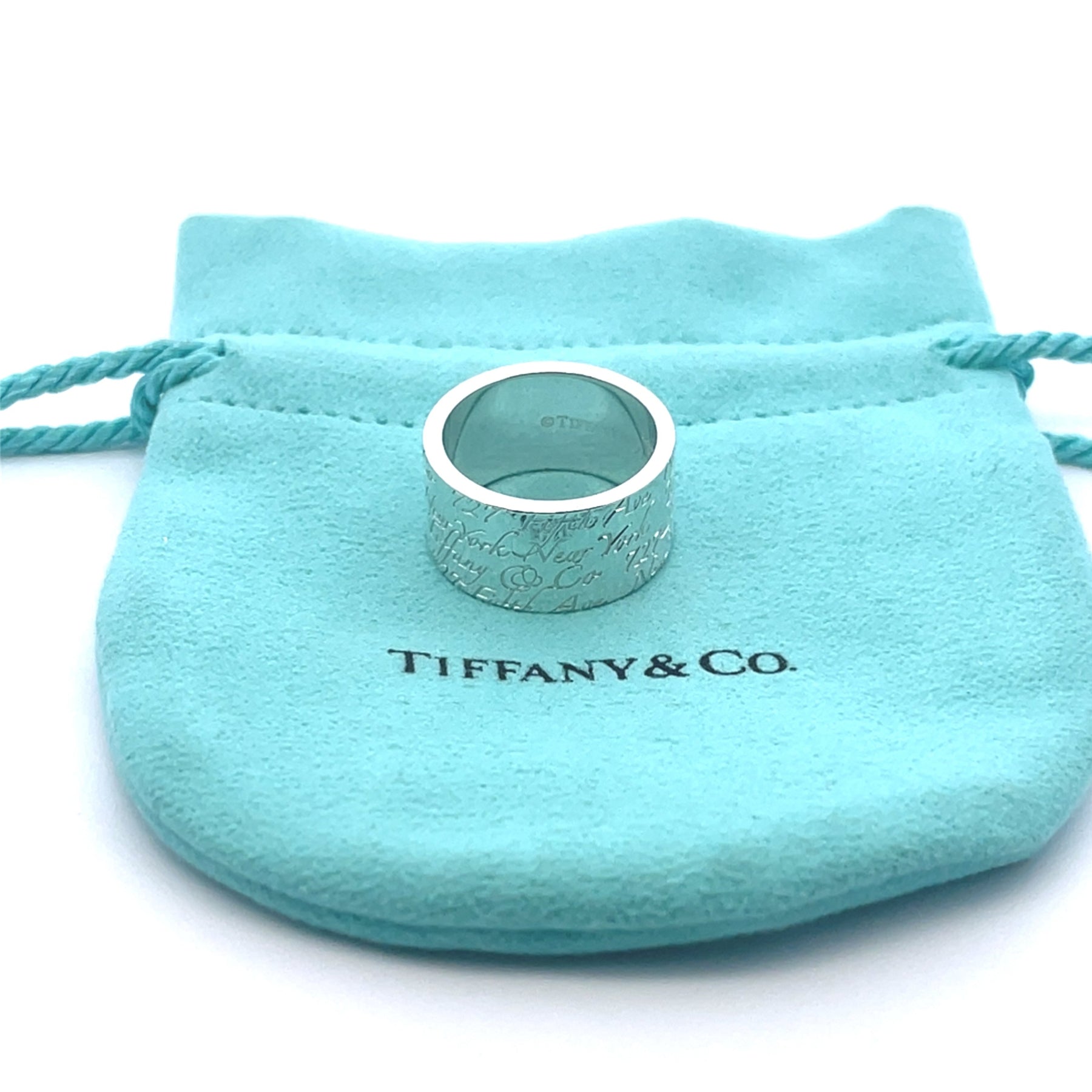 Tiffany & Co Notes Fifth Avenue Sterling Silver Wide Band Ring Size : P