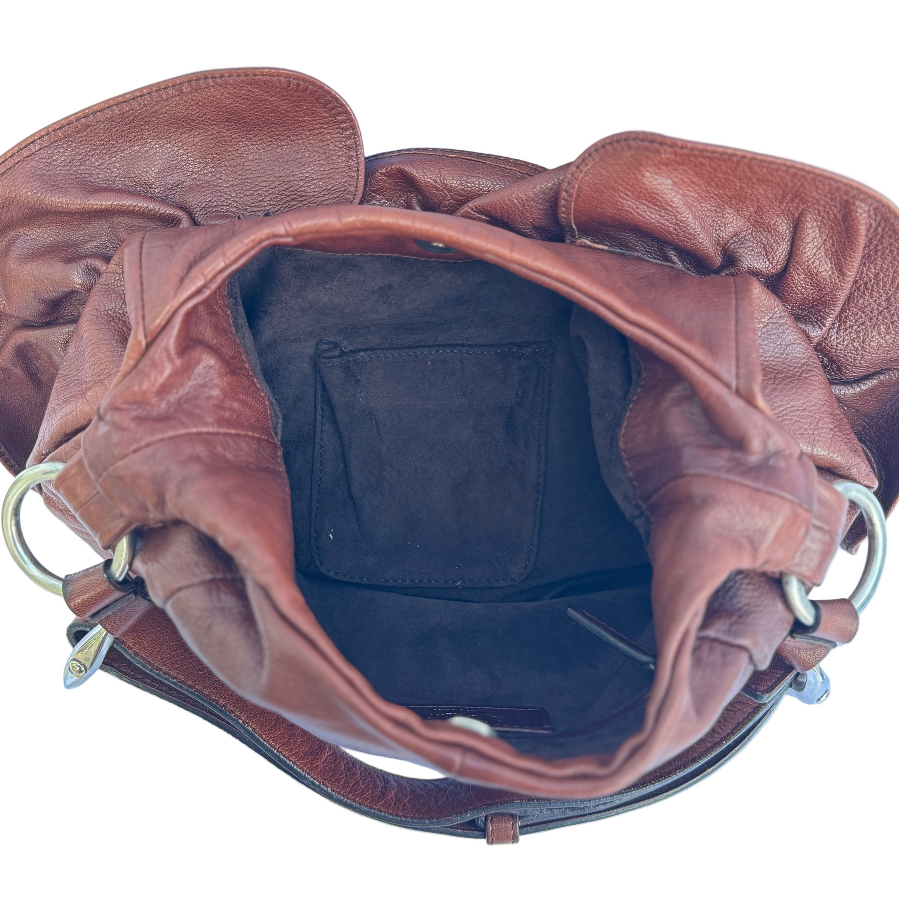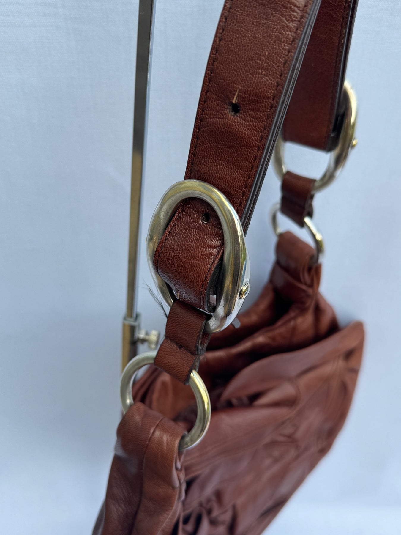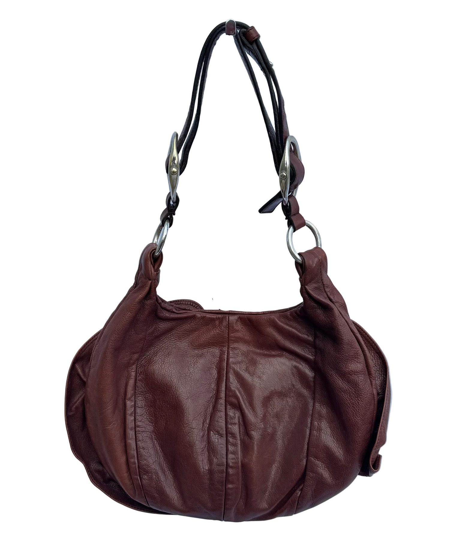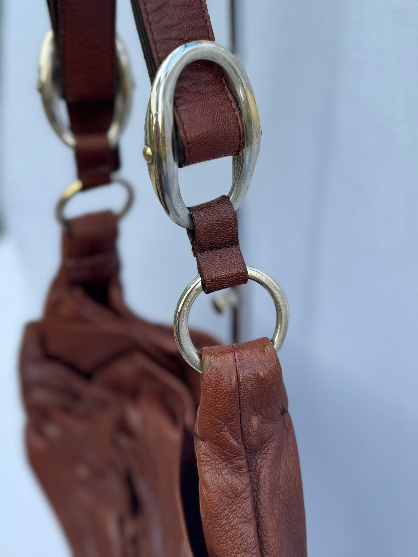 Designed by Tom Ford for YSL in 2003, the Nadja Rose Bag is a standout early-2000s piece crafted from rich brown leather with a sculpted rose design. Featuring a chic hobo silhouette and suede-lined interior, it’s a statement vintage gem — and an increasingly trendy collector’s favourite.